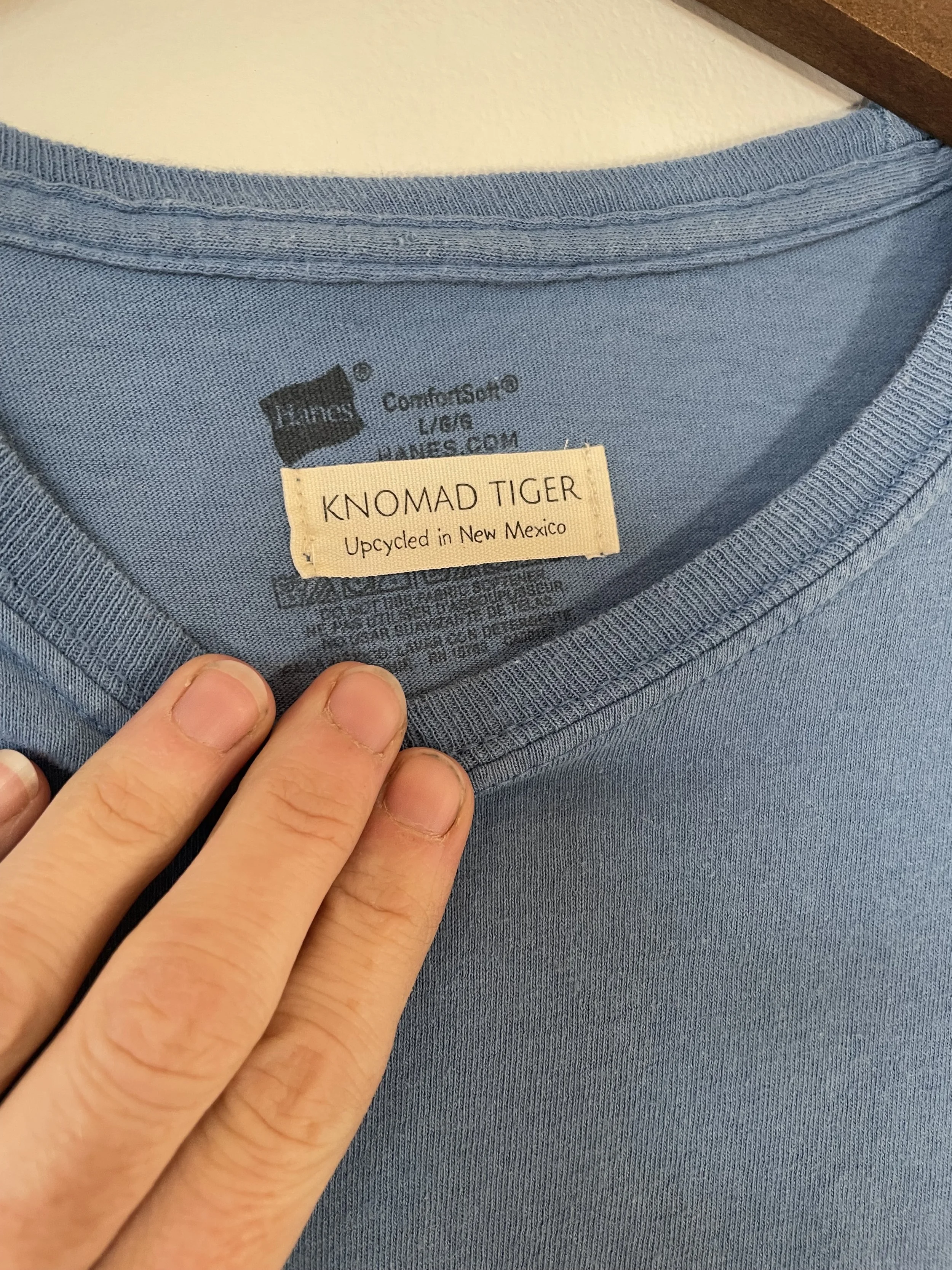 Upcycled Vintage Blue Hanes Tee - Block Stamped Sz Large